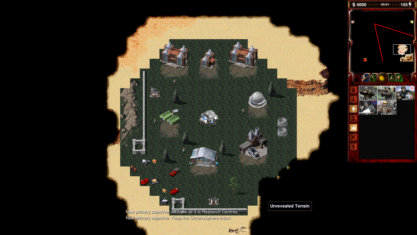 Einstein: Commander, i was trying to activate the Chronosphere to go back in time while the reds are approaching. Unfortunately a V2 hit the chronosphere and damaged it when it was being activated. Now we are in a desert planet that i have no idea where on time and space it is. I need to repair the Chronosphere but we don't have enough resources to do so. This guy says he can help. But he wants us to do some favors first.