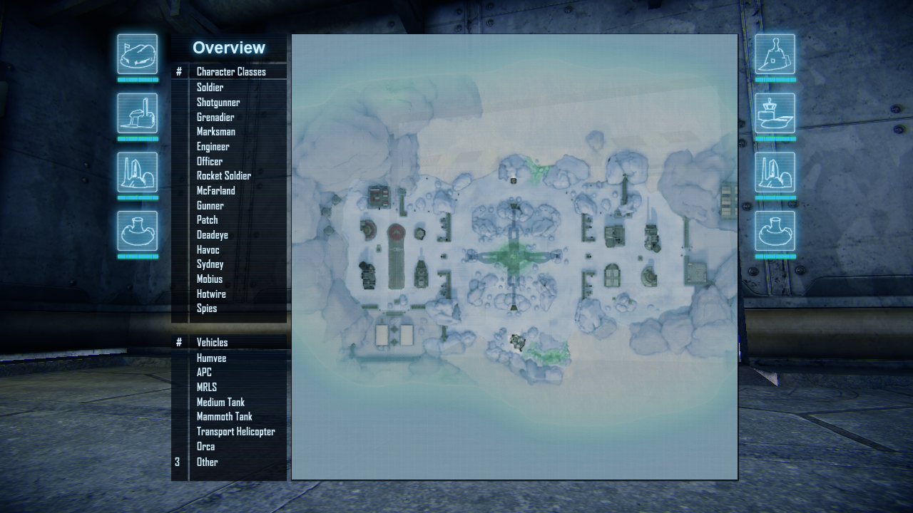 I tried to keep the map as faithful to it's Renegade X version as possible. I added Tiberium fields outside the playable areas and even added some decorative base details to the NOD and GDI sides of the map; weapons cache on the GDI side and the domes and vehicle depot on the NOD side.