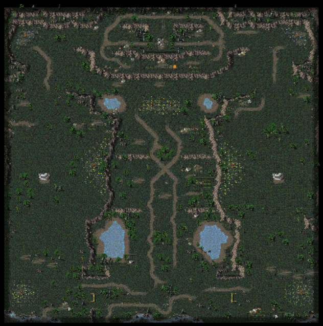 I actually did think of adding a second superweapon building to the opposite end of the map but, decided against it so that the path could be used for flanking since there's no areas of visible strategic value at that end.