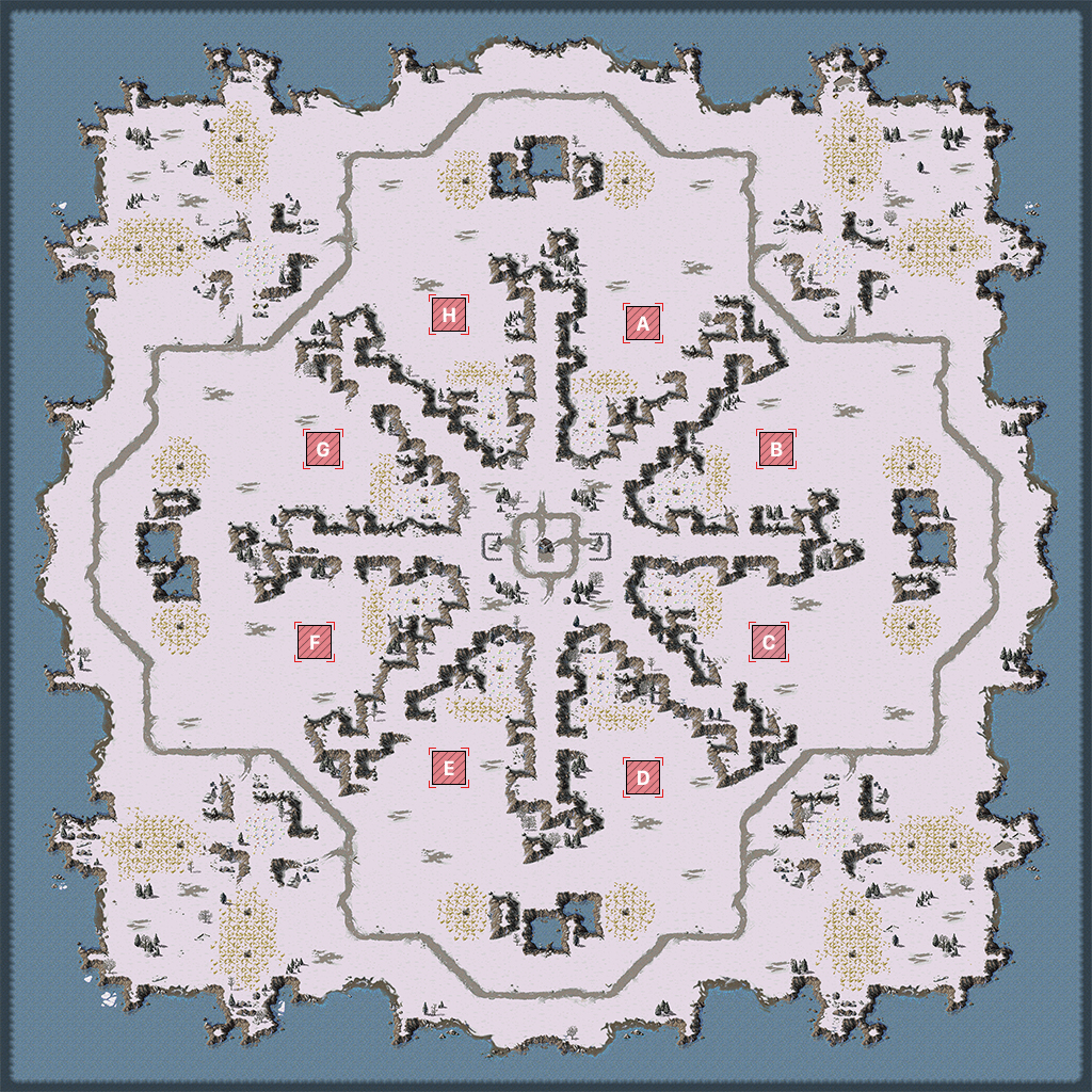 Skirmish map for 4v4, 2v2v2v2 or FFA.