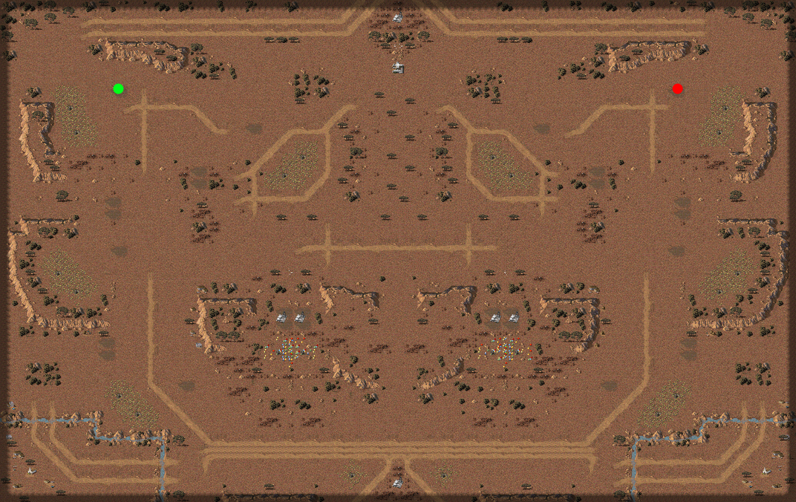 The map has too many details on it, which makes it a bit chaotic visual-wise. Also the mine count is too much for 1v1, with 9 ore and 2 gem mines per player. May easily remove side 2-mine patches.