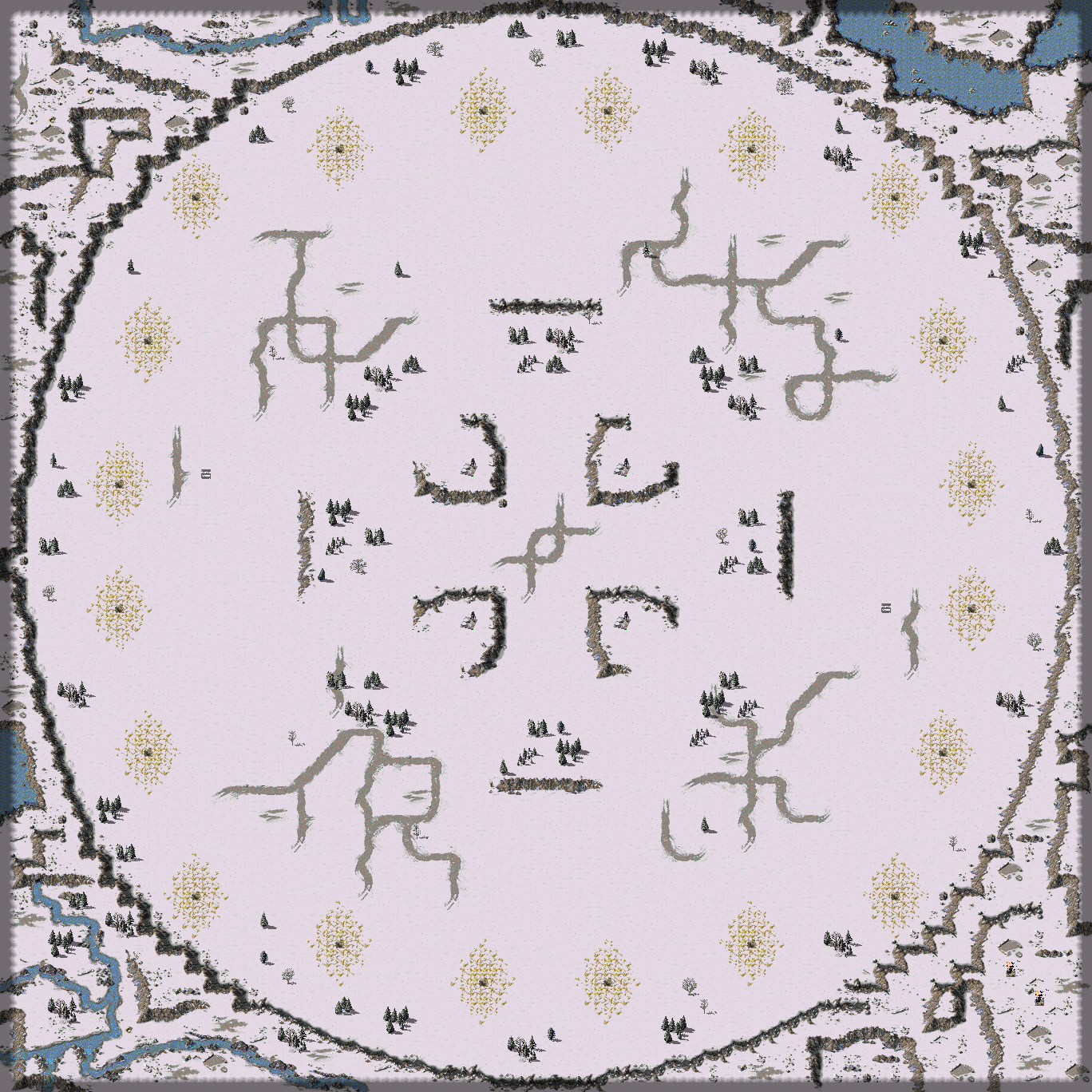 A not so serious map. I was originally planning on the start positions being in the center of the map so the players could drive to a nice location. I thought it would be an interesting concept. Until I tested how long it took to drive to a nice location (~30ish seconds) I realized that that was way too long of a wait.