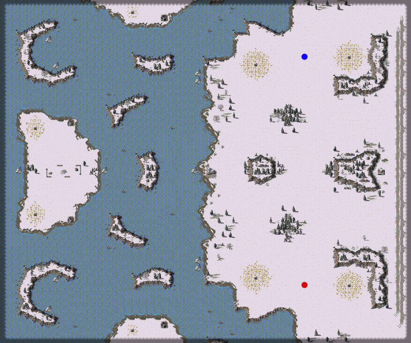 Map features recapturable Water Oil Derricks and Forward Command Centers, Hospital and Communications Center with some tweaks to naval warfare.