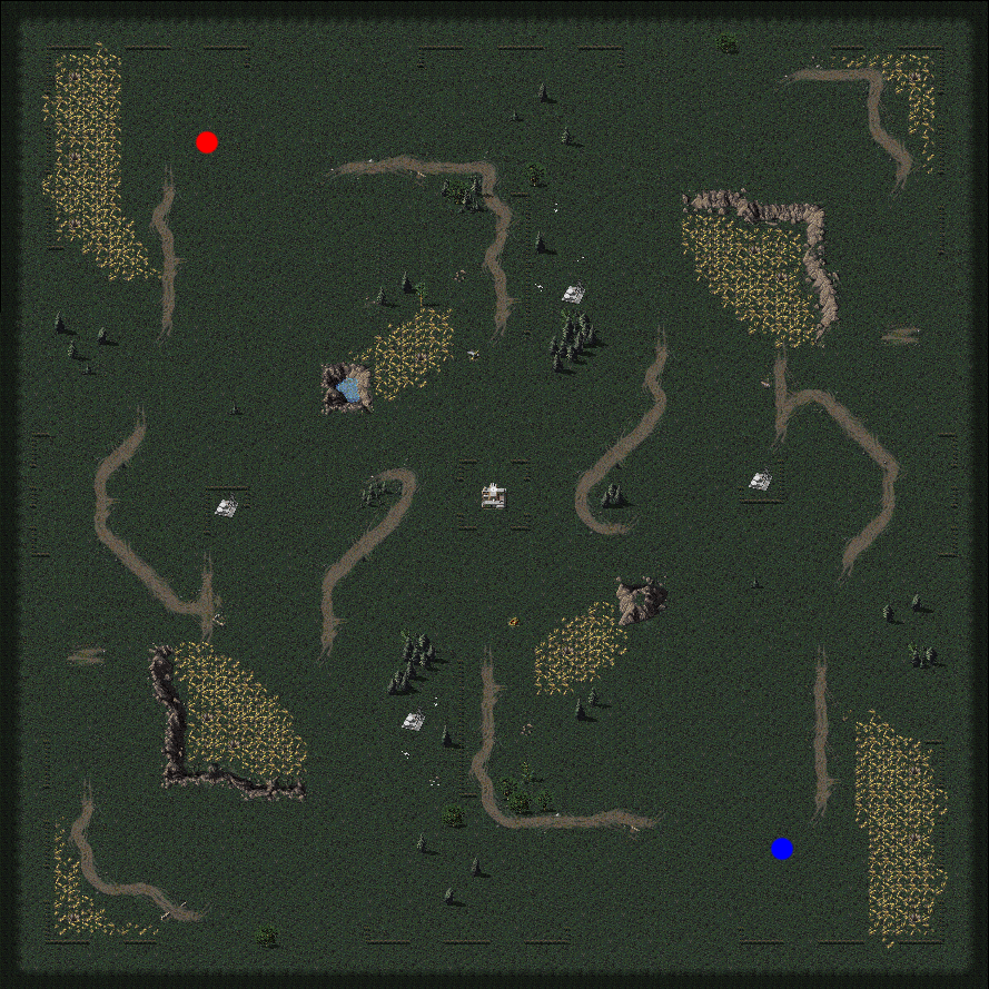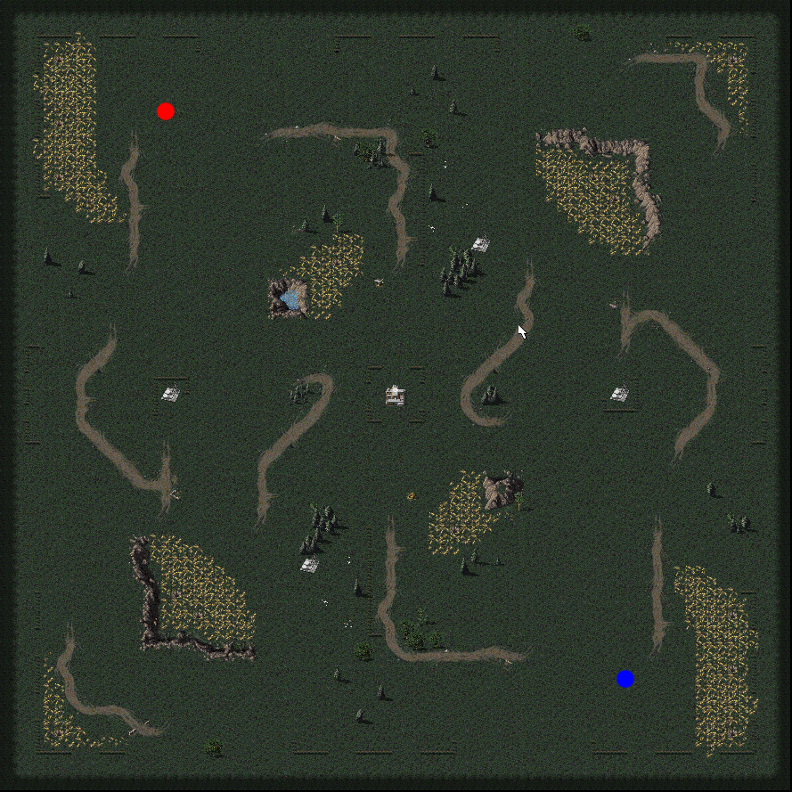 - 2-mine ore patches moved 2 cells into the middle for more exposure to top-bottom attacks and more space between them and corner mine so that it is less safe to hold them with a single base