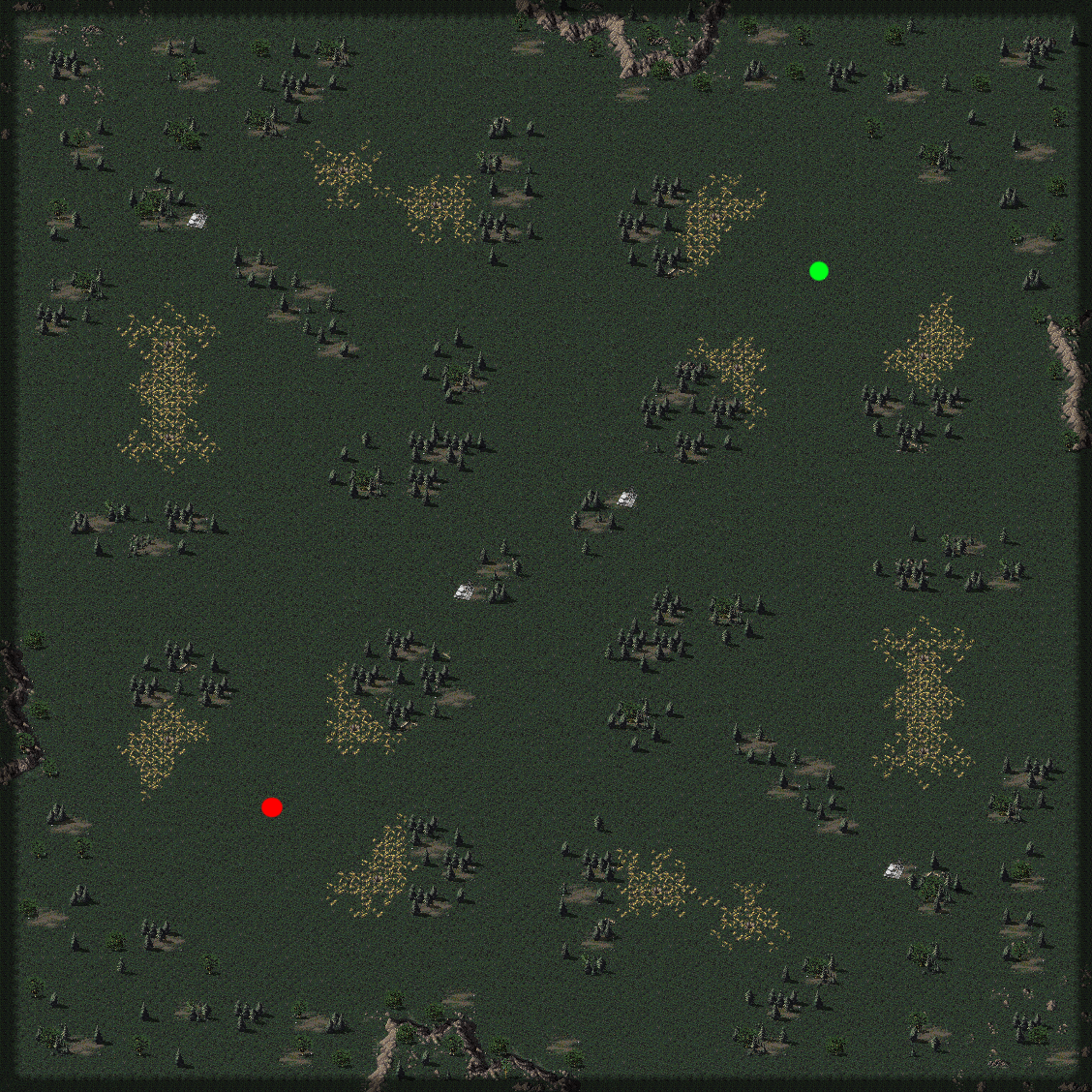 Experimental map concept, where Trees create Fog in a small radius around them.