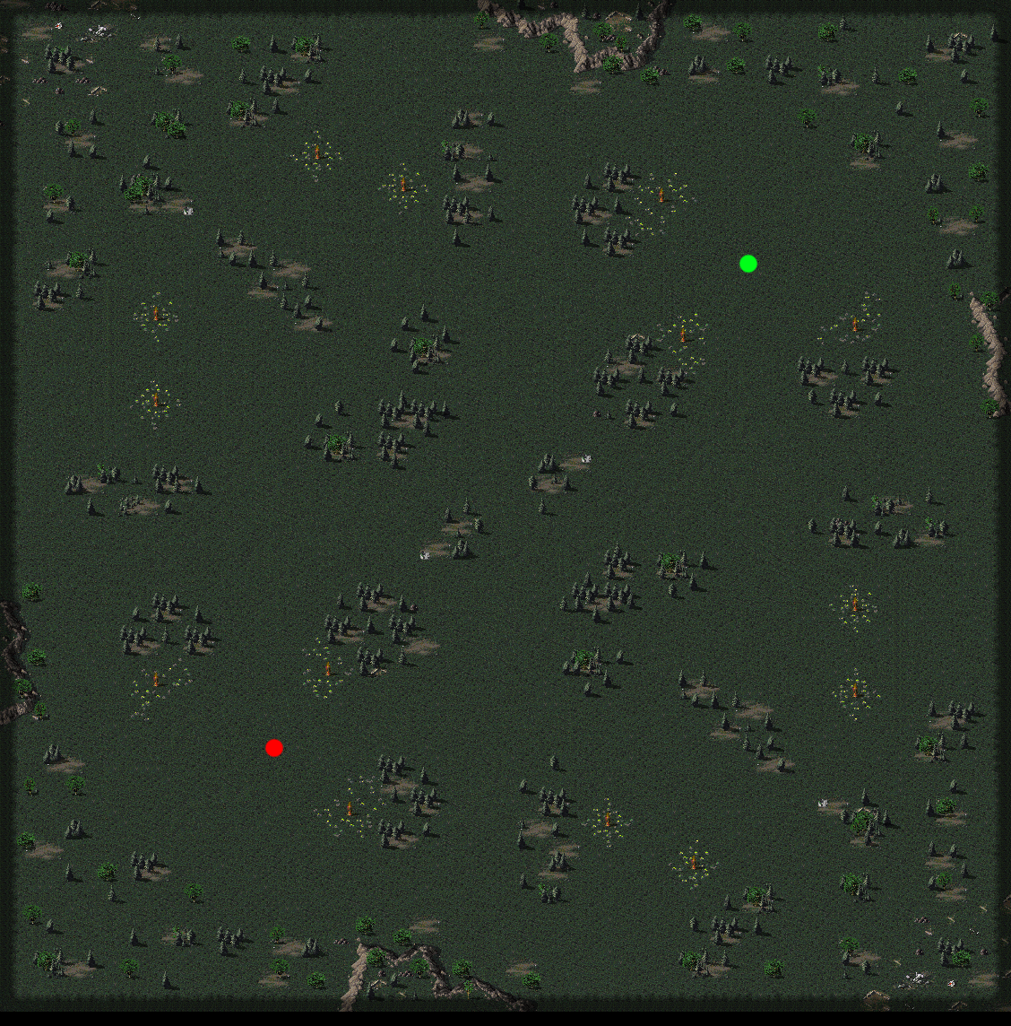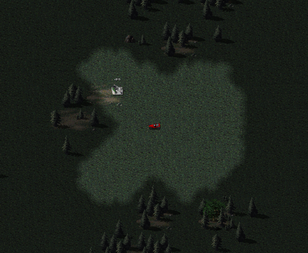 Experimental map concept, where Trees create Fog in a small radius around them.