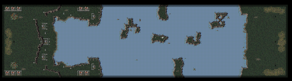 Overlord is a 1v3 map, with the solo, 4th player at a clear advantage. Their island has the defenses around the beach area, plus there are several Forward Commands to build around easily, not to mention the gems and ores they can claim nearby.