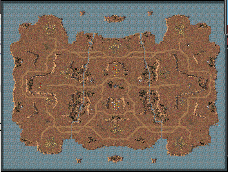 rev2: expanded river crossings, restored central plateau access from side plateau, relocated player spawn points to southwest-northeast.