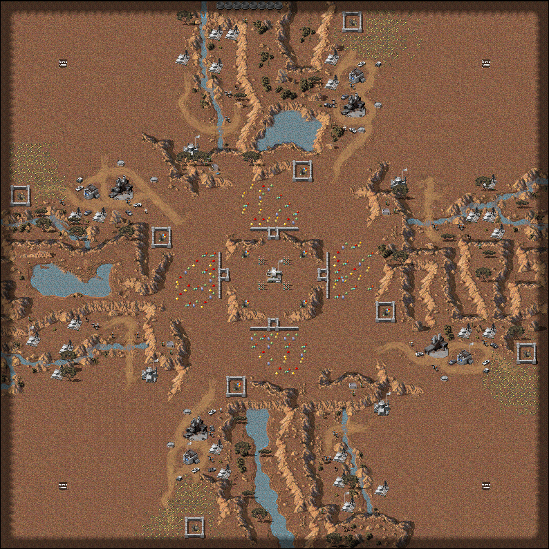 4 very risky gem mines in the middle of the map to give an eco advantage for the ones that dares to contest it.