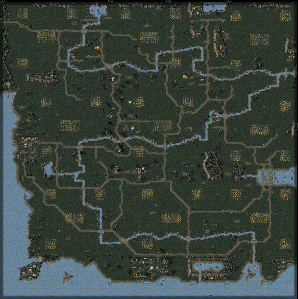 A 3x3 grid map. Should be fairly balanced in terms of ressources and area available for every spawn point. Not many wide areas beside the areas around spawn points, yet enough ground to move armies quick.
