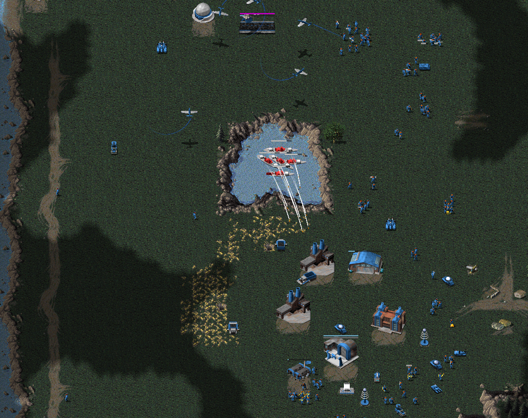 I want to see some guys Chronoing Cruisers and Destroyers in that little lake of water by the double Ore patch.