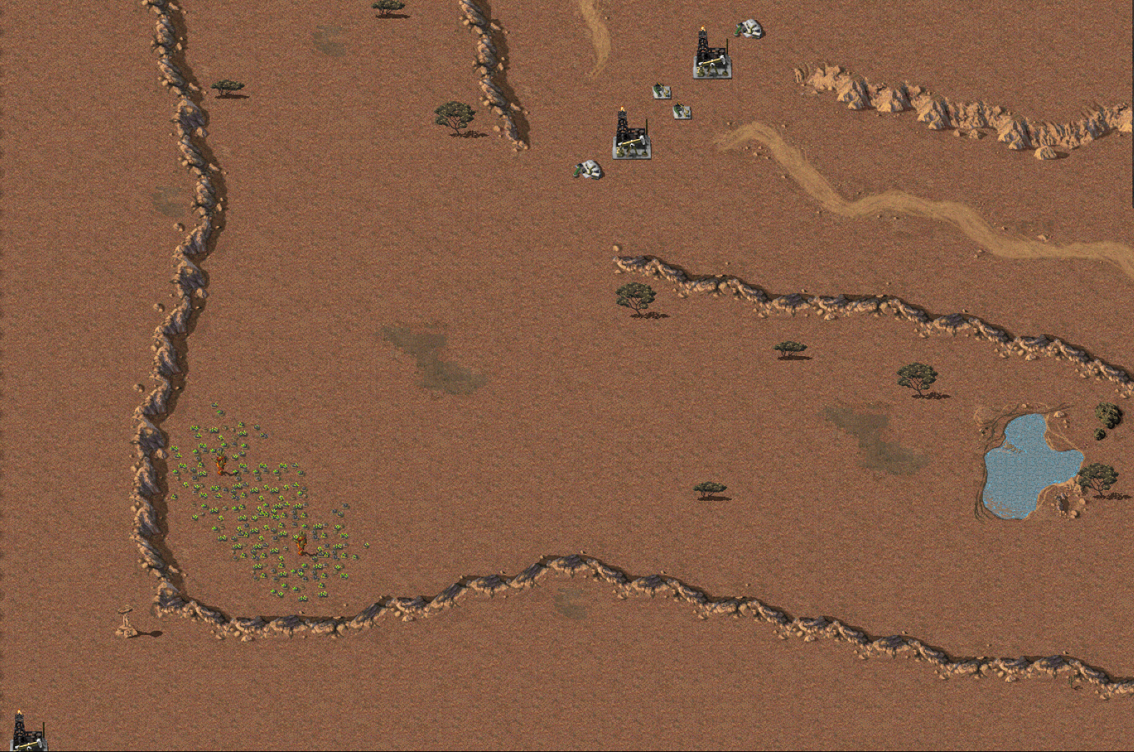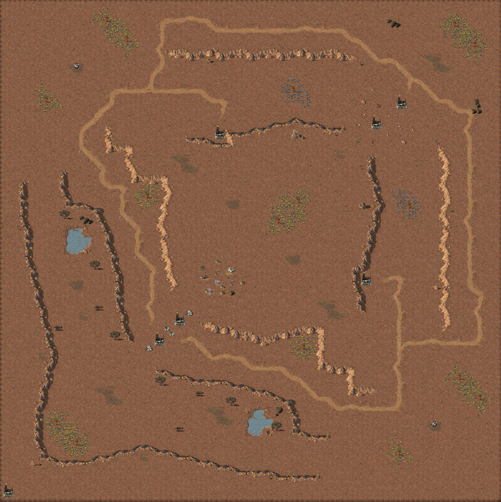 1v1 map with a lot of exclusive "lanes" to traverse, each with resources to fight over.