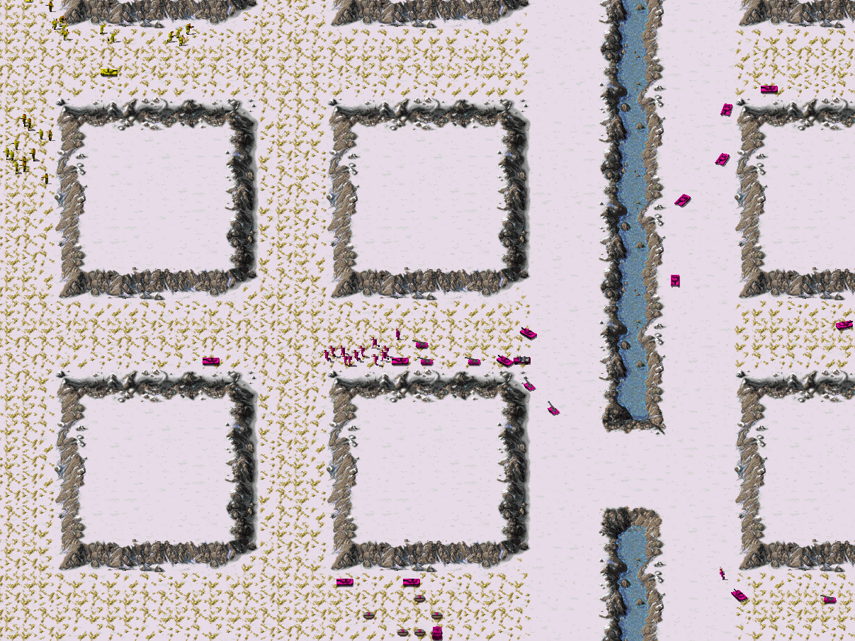 In this huge, hauntingly monotonus map you follow the ore veins through a network of square cliffs. A "+"-shaped river divides the quadrants and each quadrant has two routes to adjacent ones. Be sure to guard them.